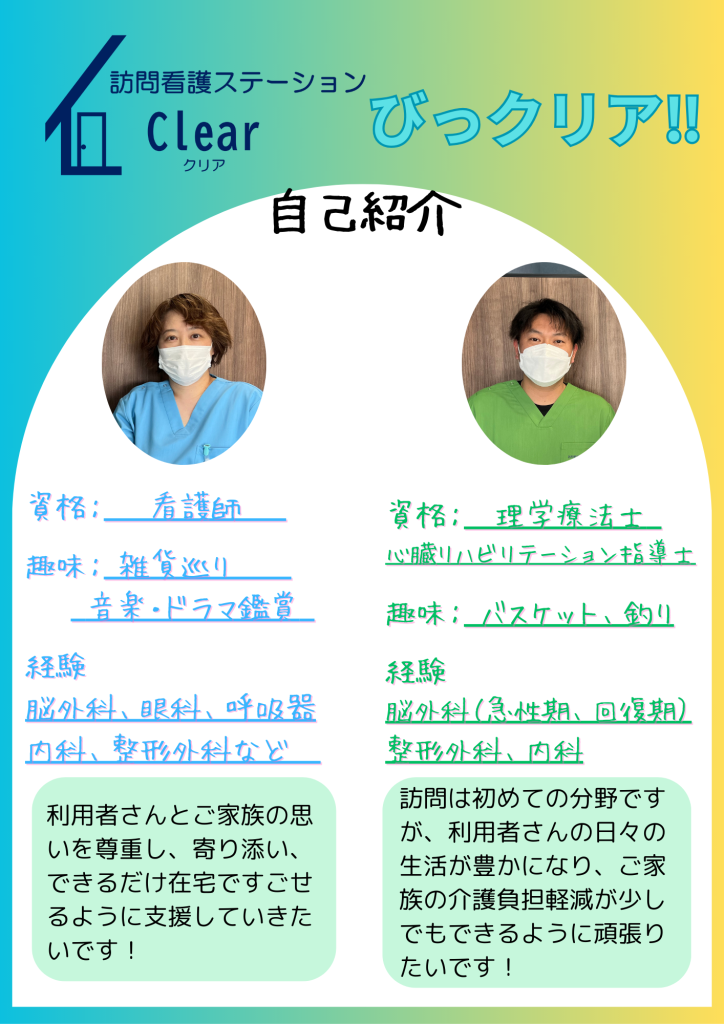 看護部もリハビリテーション部も新しい風を取り入れ、また新たな強みを持った訪問看護ステーションClearとして頑張っていきます❗️